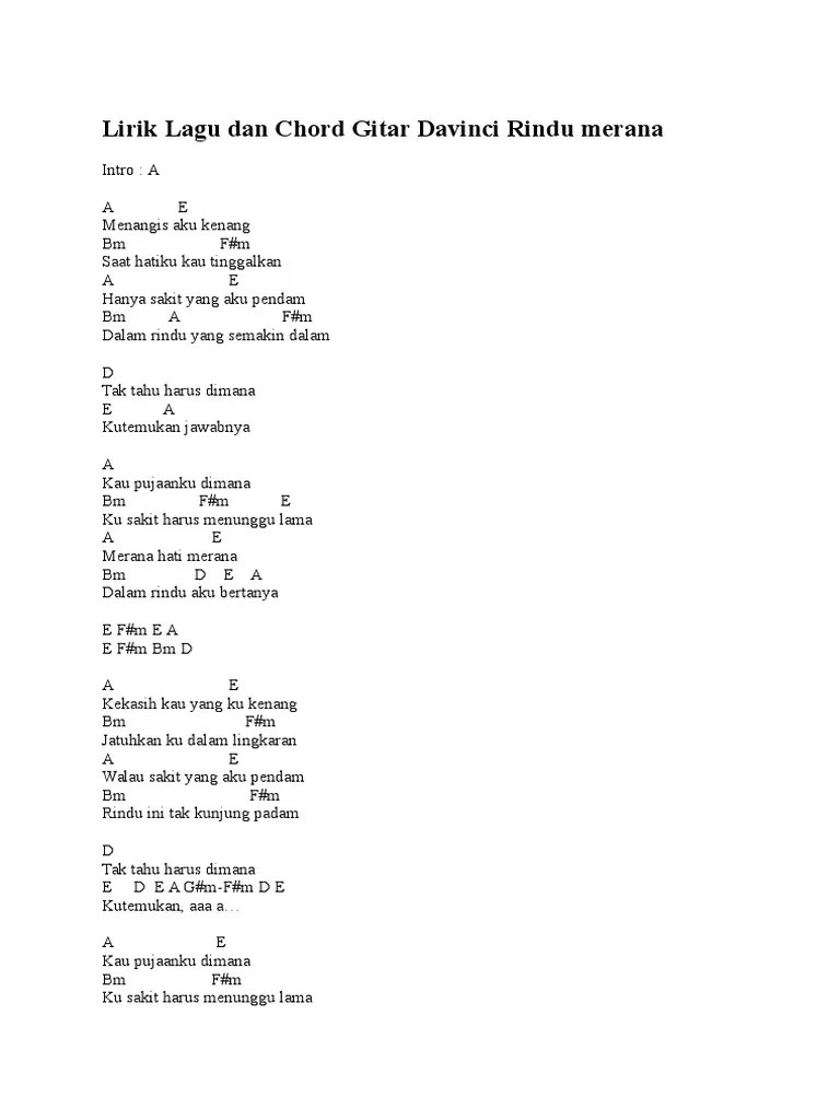 Chordify is your #1 platform for chords. A semakin hari semakin rindu. Semakin lama dm menjadi rindu. Grab your guitar, ukulele or piano and jam along . C g rindu rindu semakin rindu am em cinta cinta semakin cinta. Am d aku tersiksa rindu. Jarak yang memisahkan engkau dan aku · terlukis sebuah rasa berbingkai rindu. Em terluka dan semakin rapuh. Karena ku tak sanggup lagi. G#m f#m b ke dalam samudra cinta(mu) yang dalam. Rindu rindu semakin rindu · cinta cinta semakin cinta B e semakin hari semakin cinta. Am b dm am f g am.